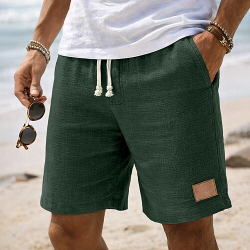 Per uomo Pantaloni di Lino Pantaloni Pantaloni Estivi Pantaloni da Spiaggia Coulisse Tasca Elastico in vita Semplice Comodità Traspirante Vacanza Quotidiano Ferie Hawaiano Boho Verde militare Nero