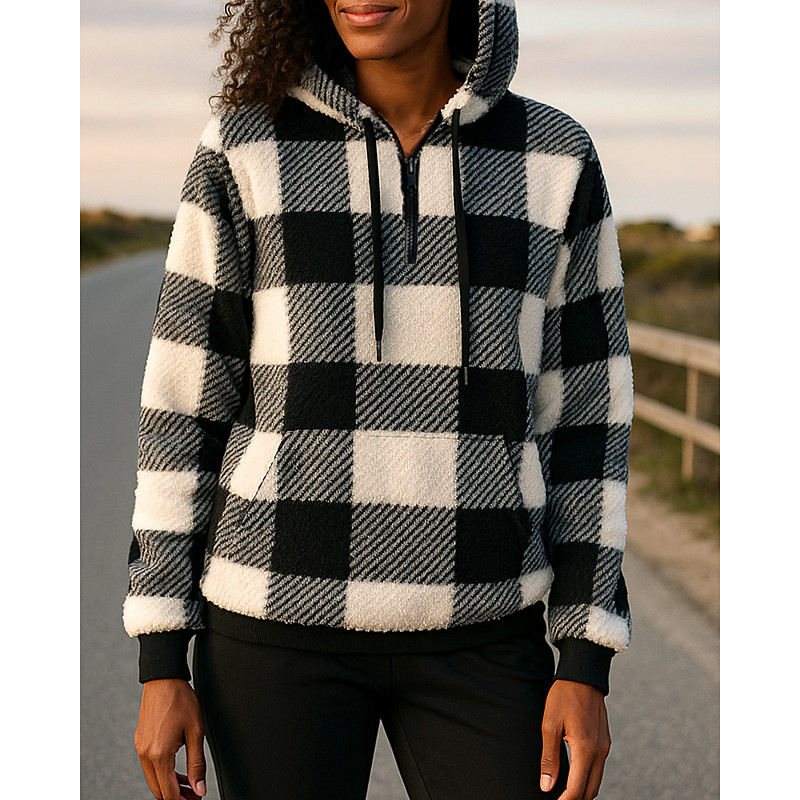 Women's Running Top Fleece Hoodie Sweatshirt Quarter Zip Long Sleeve Top Athleisure Plaid Checkered Sun Protection Windproof Gym Outdoor Running Sportswear Activewear Black Pink Light Green