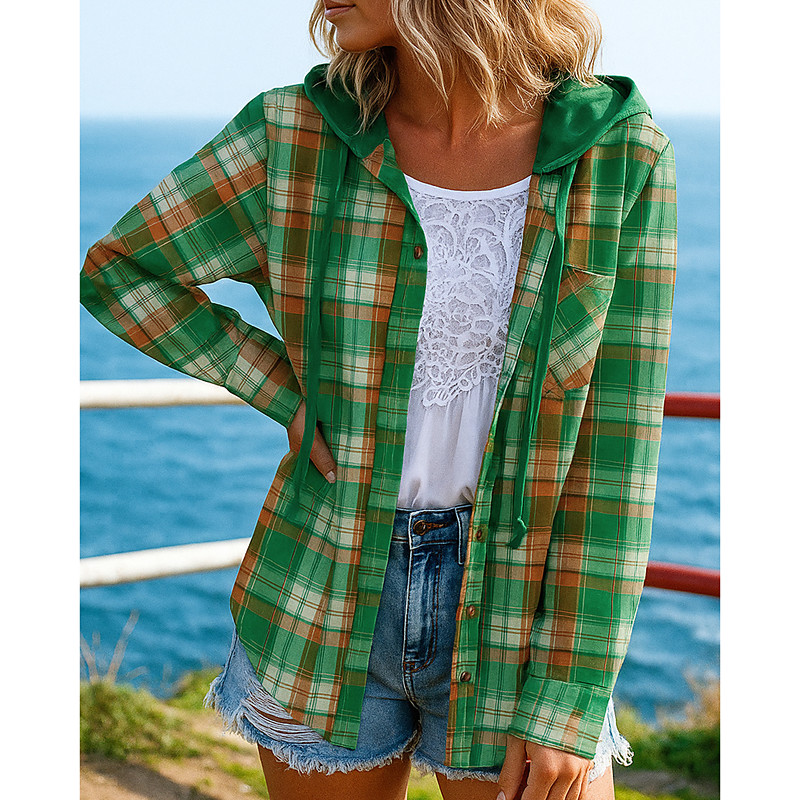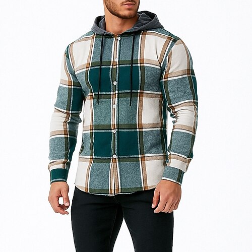 Per uomo Camicia Camicia casual Camicia con Bottoni Verde Manica Lunga Plaid Con Cappuccio Casuale Quotidiano Coulisse Abbigliamento Moda Casual Confortevole