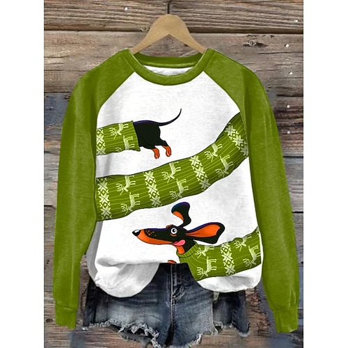 Per donna Felpa Pullover Grafico Animale Plaid Moda Casual Manica Lunga Girocollo Top Regolari Streetwear Abbigliamento Quotidiano Casuale Stampato Nero Verde chiaro Verde Grigio Autunno Inverno