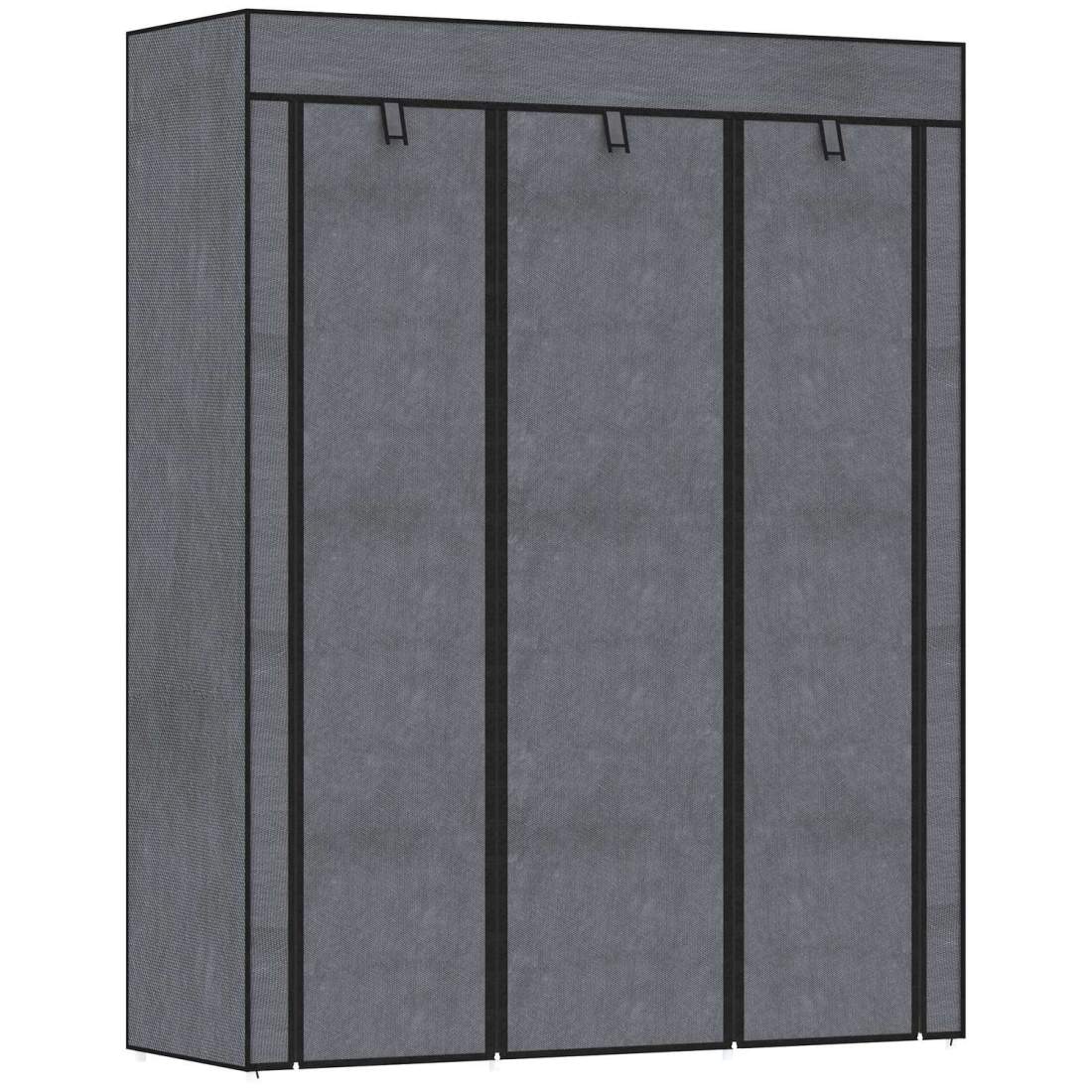 Stofgarderobe, garderobe med bøjlestang, 8 plan, foldegarderobe, foldbar garderobe til soveværelse, entre, fiberdug, mørkegrå, 1