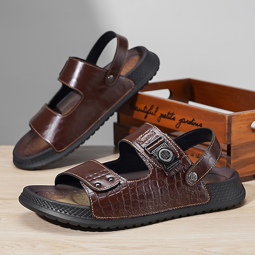 sandali da uomo con cinturino con fibbia in similpelle marrone: eleganti, morbidi, resistenti per l'outdoor, i viaggi e il comfort quotidiano