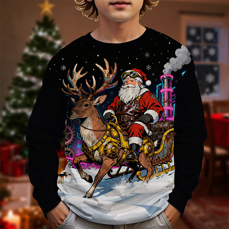 Christmas Men's Santa Claus 3D Sweatshirt Cool Party Crew Neck Vacation Party Gift Red 4 Red 3 Crewneck 3D All Seasons Designer