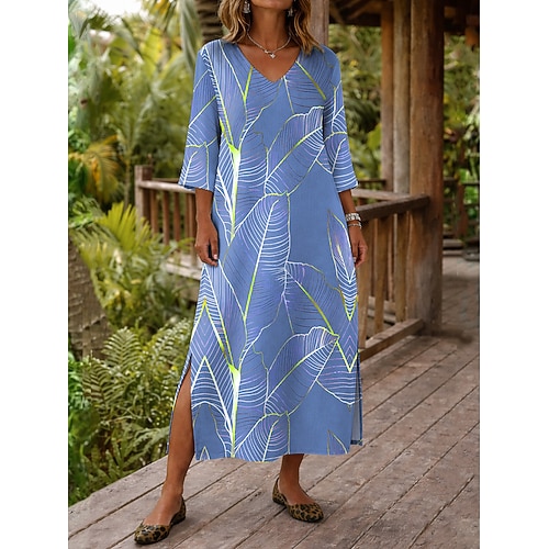 Per donna Abito maxi Abito Boho Abito a Tubino Vestito Estivo Abito da Spiaggia Bohemien Vacanza Etnico Spiaggia Ferie Data Vestibilità comoda Grafico Astratto Manica 3/4 Scollo a V Blu Azzurro cielo