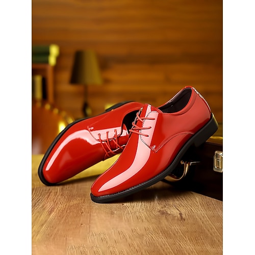 scarpe eleganti da uomo in similpelle verniciata rossa: design elegante per matrimoni, eventi serali e riunioni formali