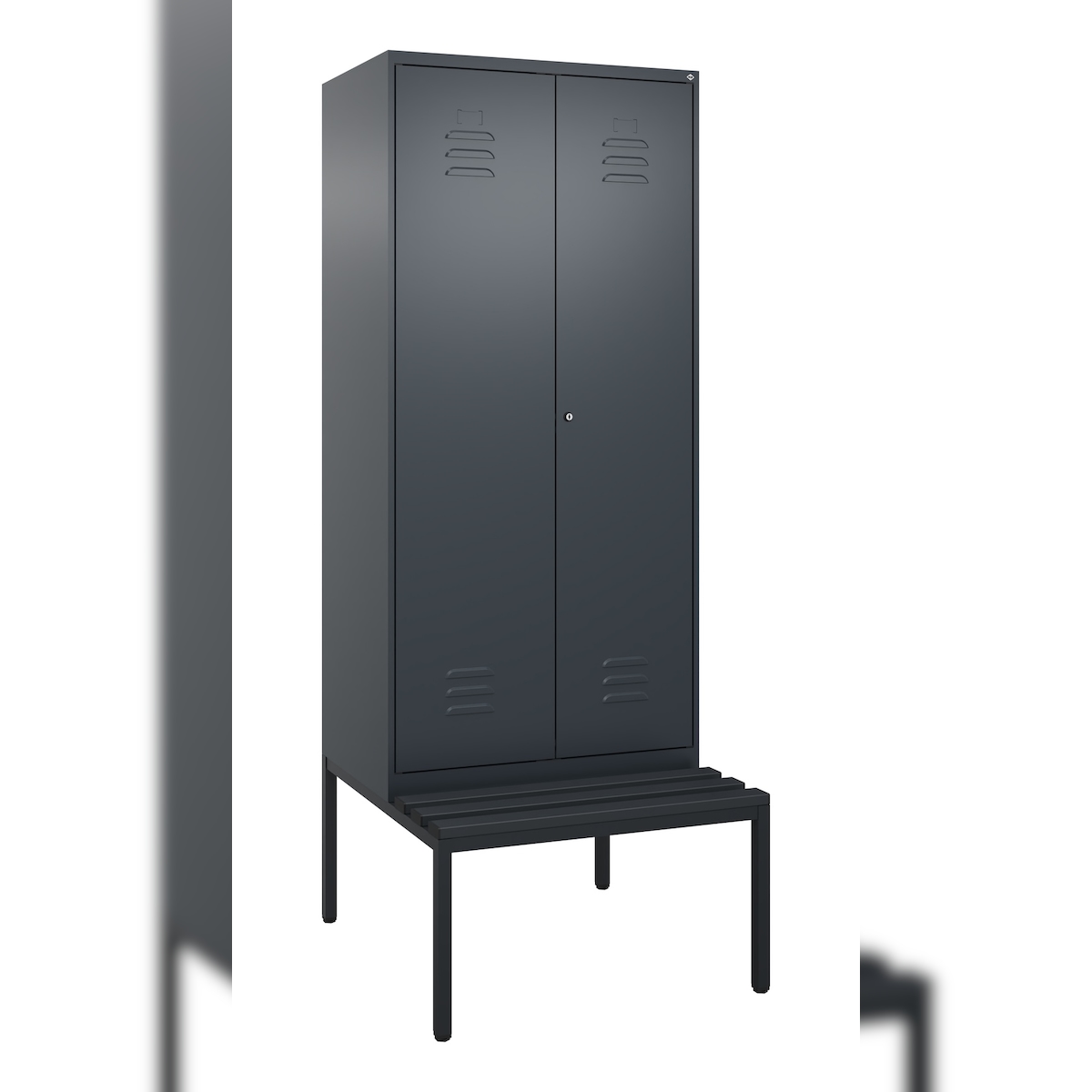C+P Spind Classic PLUS, Kunststoff untergebaute Sitzbank, 2 Abteile, HxBxT 212x60x82cm, Sicherheitsdrehriegel, Anthrazit von PROREGAL