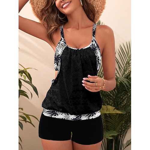 Per donna Costume da bagno Tankini 2 pezzi Tropicale Asciugatura Rapida Elastico Senza Maniche Costume da Bagno Costume da bagno Surf Spiaggia Nuoto Estate