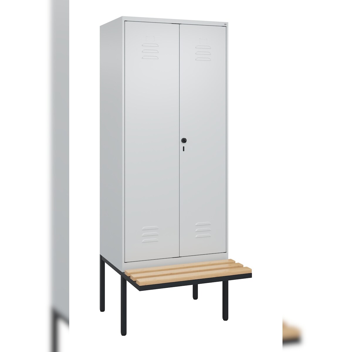C+P Doppel-Spind Classic PLUS, schwebender Sitzbank aus Buche 2 Abteile, HxBxT 212x80x82cm, Sicherheitsdrehriegel, Hellgrau/Hellgrau von PROREGAL