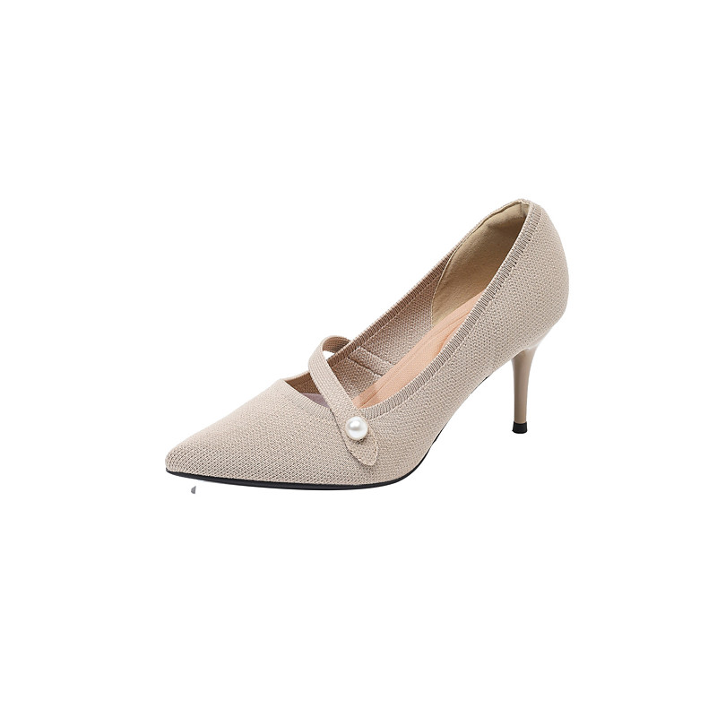 Women's Burgundy Pointed Toe Knit Pumps with Pearl Strap Accent – Comfortable High Stiletto Heels for Daily Commuting, Office Wear Elegant Professional Ladies