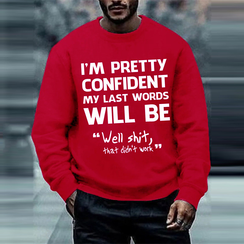 Men's Funny Long Sleeve Sweatshirt: 'Well Shit, That Didn't Work' Quote Graphic Crewneck
