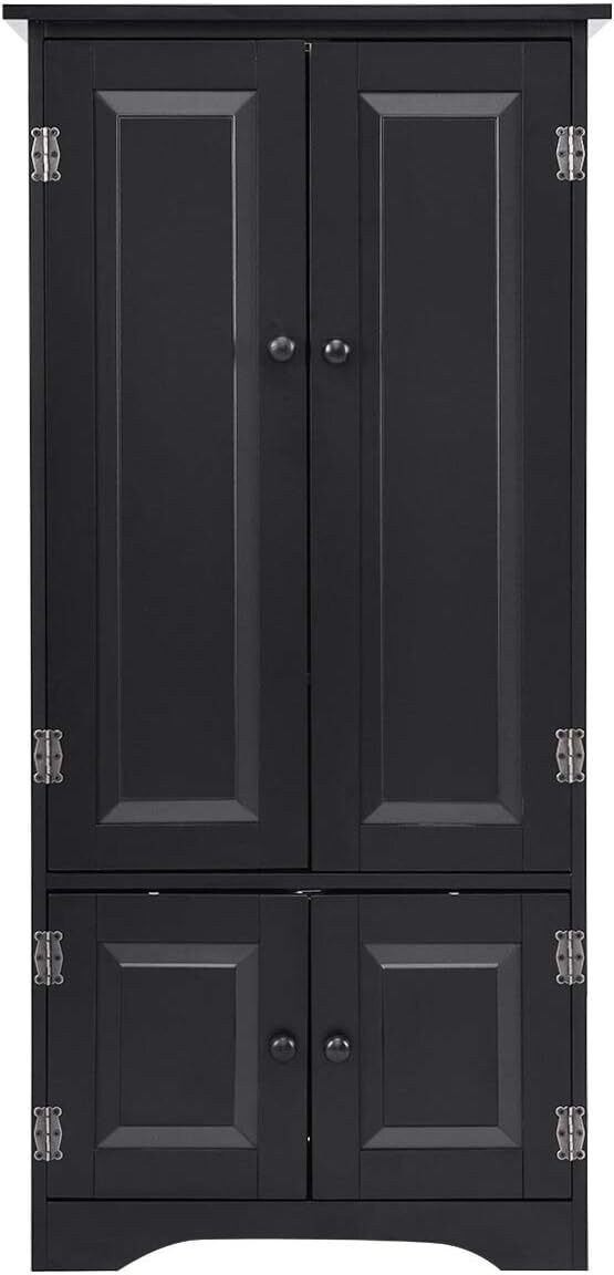 COSTWAY Holz-Seitenschrank, Multifunktionale Sideboard für Wohnzimmer, Badezimmer, Küche 59 x 32 x 123 cm (Schwarz)