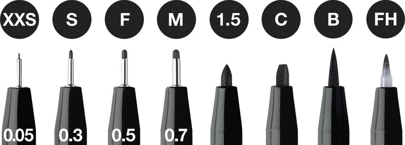 Faber-Castell Pitt Artist Pen tekenstiften in etui, 8 stuks, 199 Zwart, puntmaten XXS, S, F, M, B, C, 1.5, FH