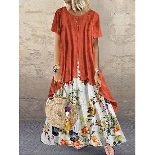 Per donna Abito maxi Abito a trapezio Abito Estivo Casual Quotidiano Vestibilità comoda Floreale Manica Corta Girocollo Giallo Rosa Rosso Viola Estate Primavera Autunno