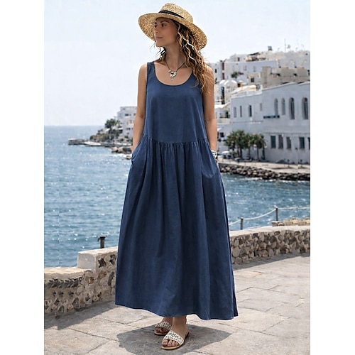 Per donna Abito maxi Abito a trapezio Abito Estivo Abito Sottoveste Casual Quotidiano Vestibilità comoda Semplice Senza Maniche Girocollo blu navy Estate Primavera Autunno