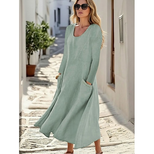 Per donna Abito Midi Misto cotone Abito a Tubino Abito in cotone Elegante Moda Moderno Quotidiano All'aperto Vacanza Vestibilità comoda Semplice Manica Lunga Girocollo Bianco Verde chiaro Rosa Azzurro