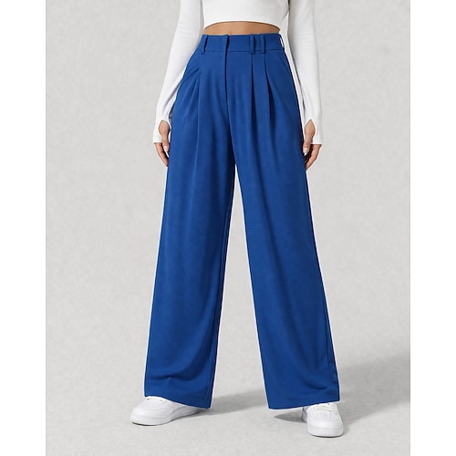 Per donna Nido d'ape Gamba larga Chinos Vacanza Lunghezza intera Vita Alta Comodità Micro-elastico Quotidiano Blu Verde translucido Aalbicocca Nero Primavera Vestibilità comoda