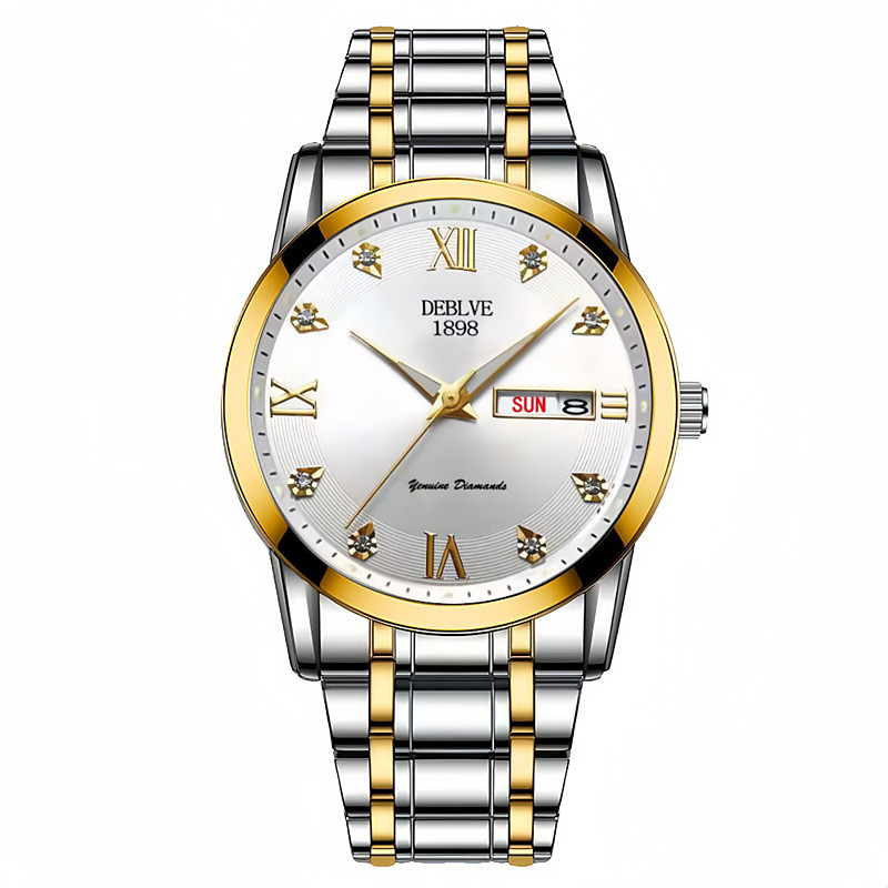 The New Deblve Brand Women'S Steel Band Watch With Ipx7 Water Resistance Calendar Luminous Day Display Quartz Watch Is A Fashionable Casual And Versatile Ladies' Wristwatch