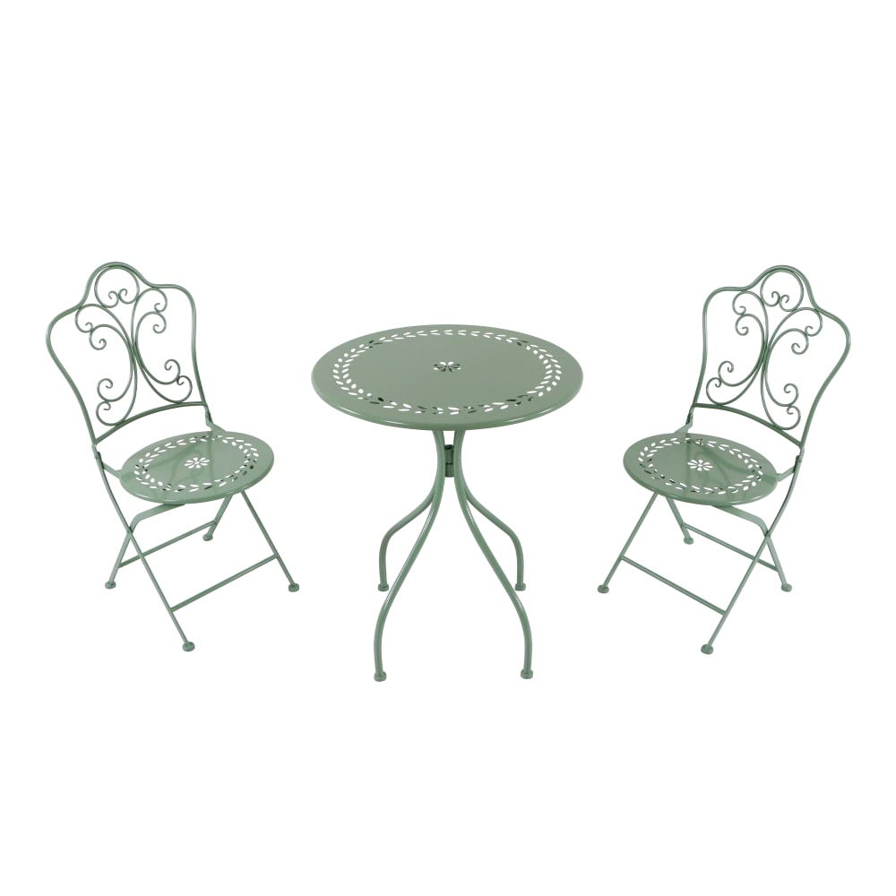Tavolo da bistrot con 2 sedie in metallo, verde pastello