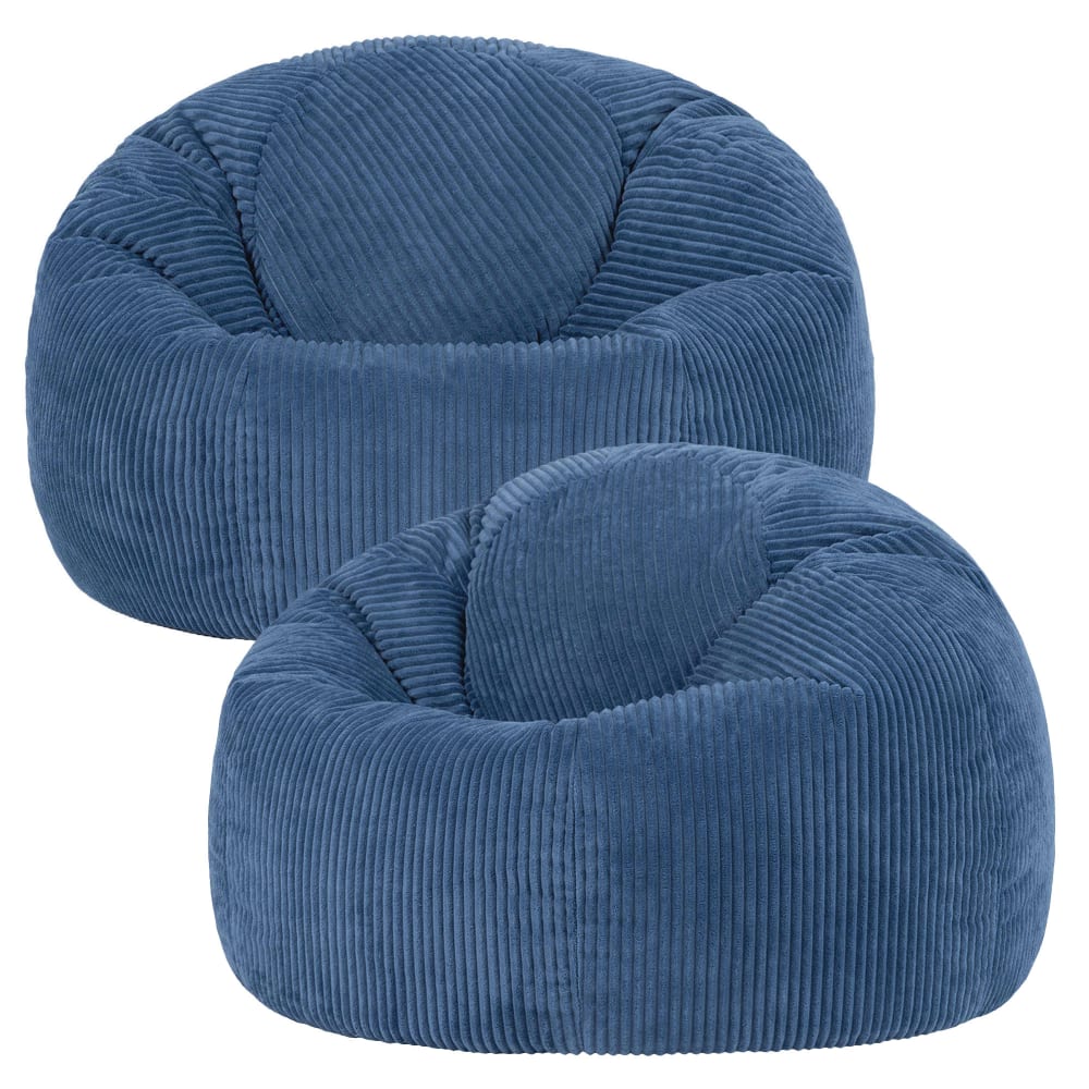 Set di 2 pouf in velluto a coste blu jean
