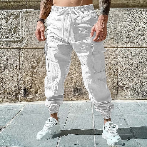 Per uomo Pantaloni cargo Pantaloni di lino Pantaloni Pantaloni estivi Pantaloni da spiaggia A cordoncino Vita elastica Multi tasca Liscio Comfort Traspirante Lunghezza intera Informale Giornaliero