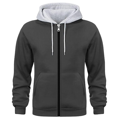 Per uomo Felpa con cappuccio a zip intera Felpa con cappuccio e zip Giacca in Pile Felpa con cappuccio in pile Nero Blu marino Cachi Grigio Con Cappuccio Blocco di colori Con zip Patchwork Sport