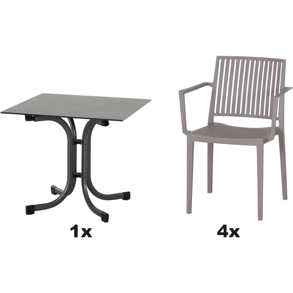 SIENA GARDEN Urban Lights Set 5teilig Square Sessel gastrotauglich taupe mit Tisch Sola 80x80