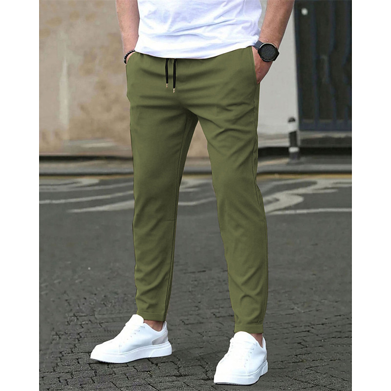 Men's Trousers Chinos Pocket Elastic Waist Drawstring Plain Comfort Formal Party Work Fashion Classic Style Black Light Green Micro-elastic