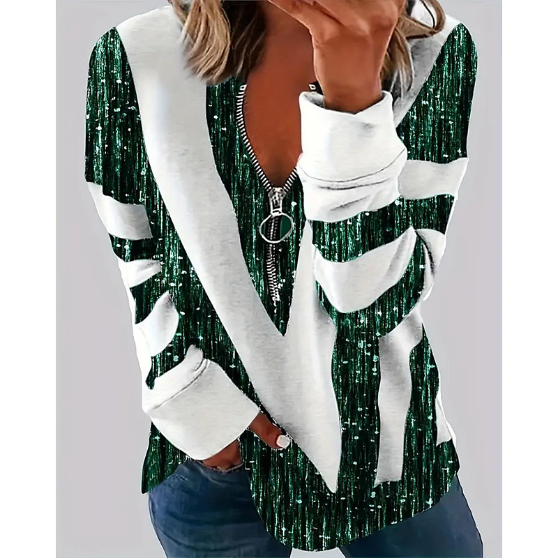 Women's Blouse Dressy Tops Solid Color Graphic Striped Ladies Stylish Classic Long Sleeve Polo Collar Regular Tops Work Daily Going out Zipper Black And White Black White Blue Green Fall Winter