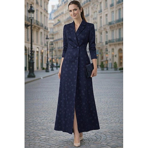 Per donna Abito da smoking Abito da ballo Linea ad A Formale Ospite di nozze Raso Elegante Manica 3/4 Lunghezza al pavimento Lunghezza alla caviglia Dentellato Doppiopetto