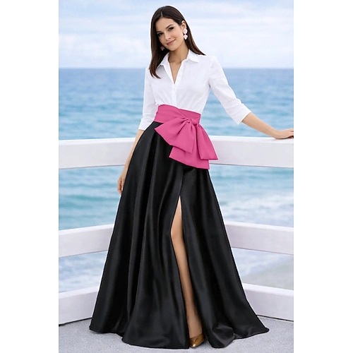 Linea ad A Lunghezza al pavimento Abito Derby Abito da Sera Da principessa Abito formale Elegante Spacco Alto Manica 3/4 Colletto a Camicia Matrimonio Formale Cintura / Fascia Raso con Fiocco/Fiocchi