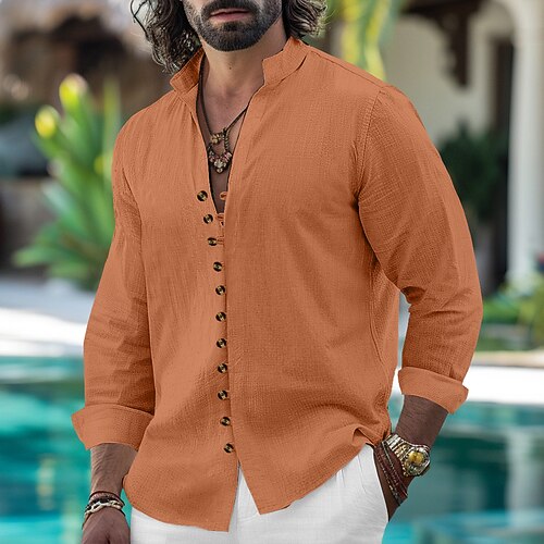 Per uomo Camicia Camicia di lino Camicia Estiva Camicia casual Camicia con Bottoni Semplice Vacanza Crociera Nero Bianco Rosa Azzurro cielo Manica Lunga Colletto alla coreana Primavera Autunno