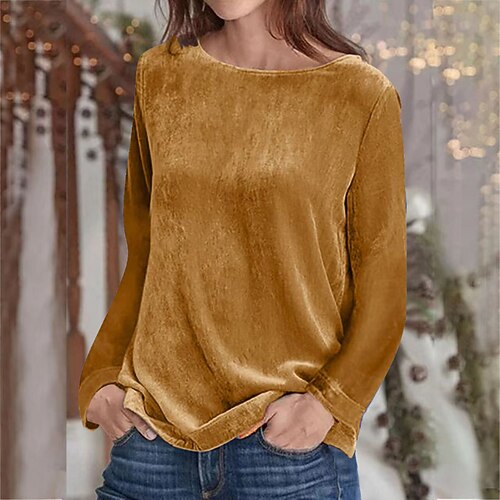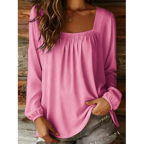 Per donna Maglietta Tinta unica Casual Manica Lunga Girocollo Top Regolari Quotidiano Uscire Weekend Blu Rosa Azzurro cielo Cachi Primavera Autunno