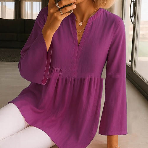 Per donna Blusa Semplice Casual Manica Lunga Colletto a Camicia Top Regolari Quotidiano Ferie Uscire Tasca Bottoni Nero Bianco Verde chiaro Rosa Azzurro cielo Estate Primavera