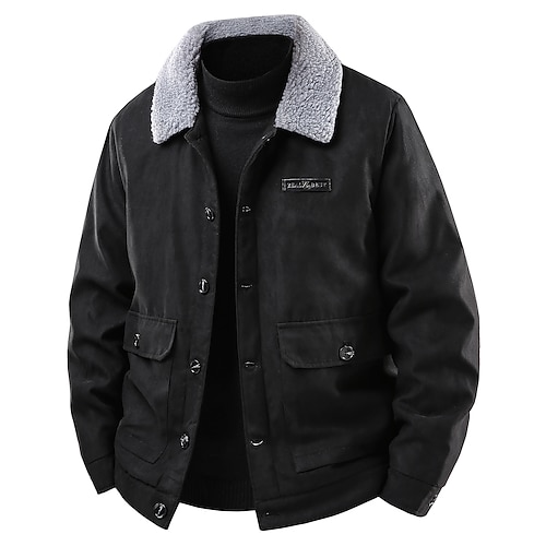 Per uomo Giacca in finta pelle scamosciata Giacca a vento Giacca in Camoscio Marrone Casuale Casual Quotidiano Giacca a Vento Tasca Colletto in pile Inverno Primavera Autunno Tinta unica Vintage