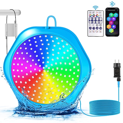 LED-Poolbeleuchtung mit App-Steuerung, dimmbare 20-W-Unterwasserleuchte mit Magneten, wasserdichte IP68-Poolbeleuchtung mit Farbwechsel, 12 V, Timer für Aufstellpools