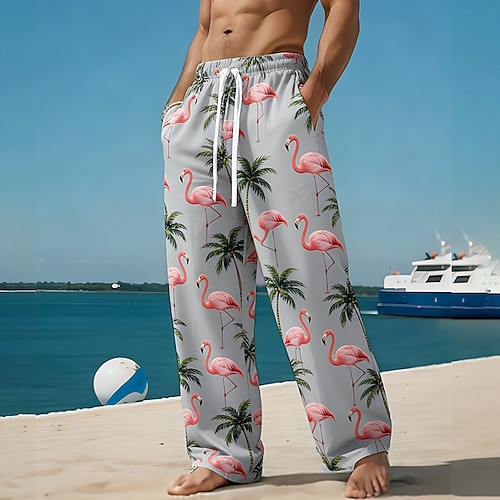Per uomo Fenicottero Uccello Albero di Cocco Pantaloni Pantaloni casual Pantaloni Larghi Misura del girovita medio Hawaiano All'aperto Vacanza Abbigliamento mare Coulisse elastica in vita Pantaloni