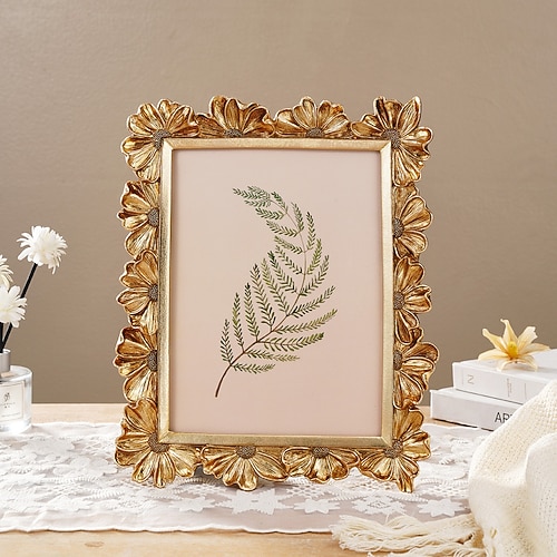 Cornice portafoto decorativa 3D a forma di margherita dorata, in resina, stile europeo, da tavolo, ideale per arredare camera da letto, soggiorno, studio, corridoio, come regalo per le feste o come