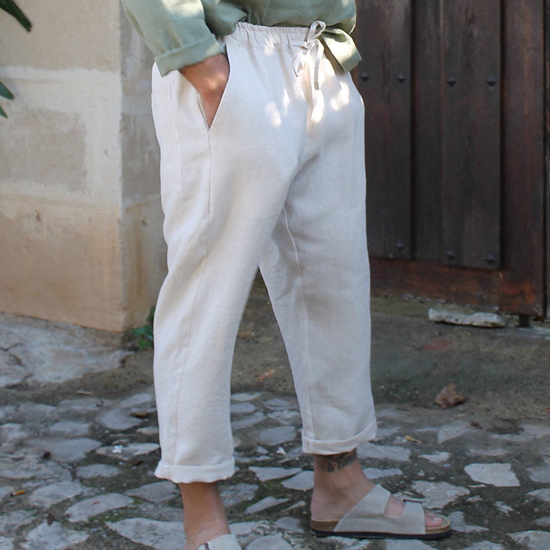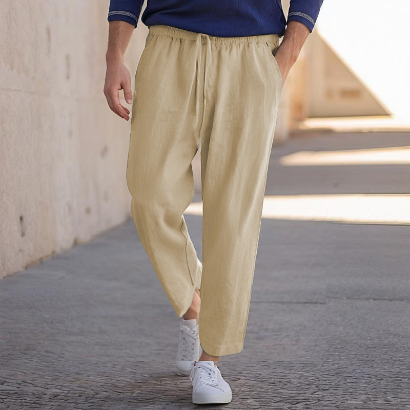 Men's Linen Pants Trousers Beach Pants Pocket Drawstring Plain Comfort Breathable Daily Stylish Hip Hop Black White Micro-elastic