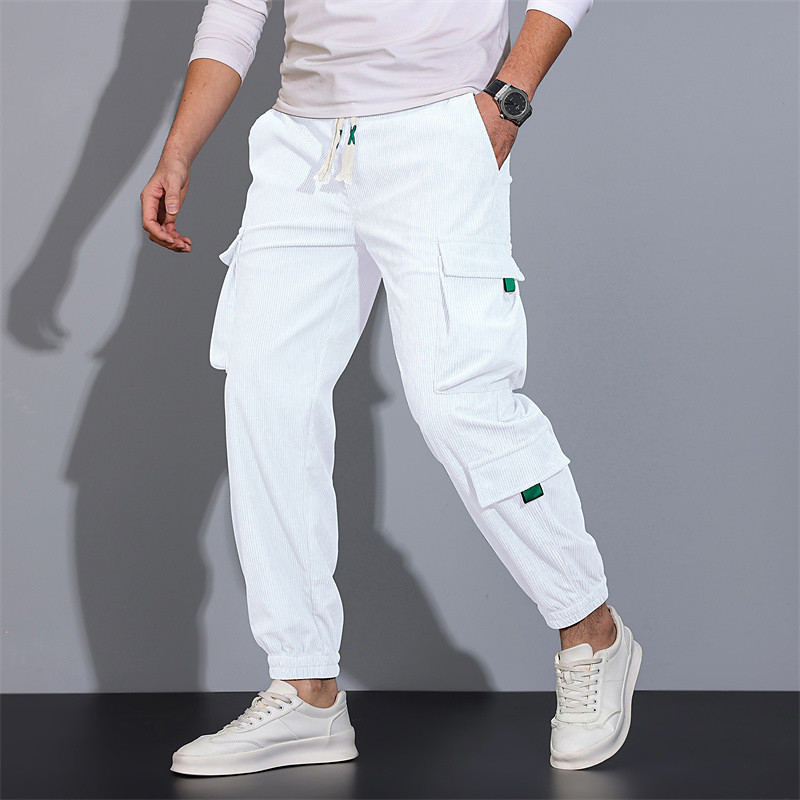 Men's Cargo Pants Trousers Elastic Waist Multi Pocket Elastic Cuff Plain Wearable Outdoor Daily Camping Hiking Fashion Classic Black White