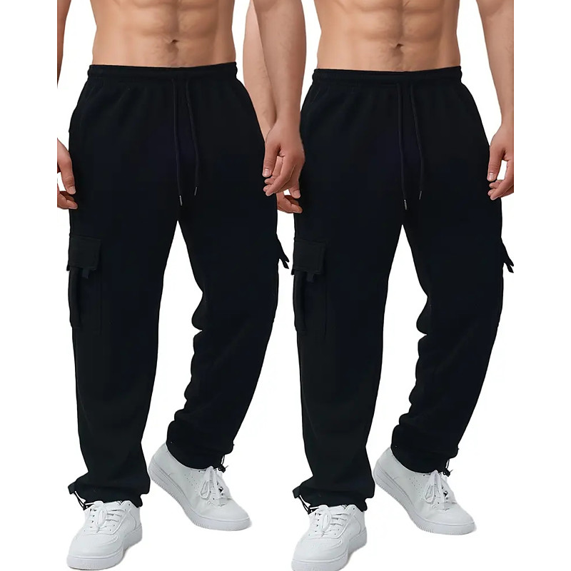 Multi Packs 2pcs Men's blackdark grey Sweatpants Cargo Sweatpants Drawstring Elastic Waist Plain Vacation Daily Wear Polyester Fall