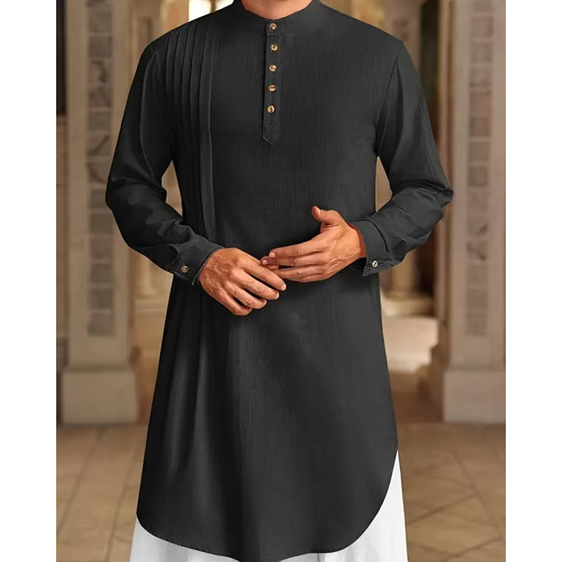 Men's Loungewear Nightgown Nightshirt Plain Stylish Comfort Home Daily Cotton Breathable Stand Collar Long Sleeve Spring Fall Black White