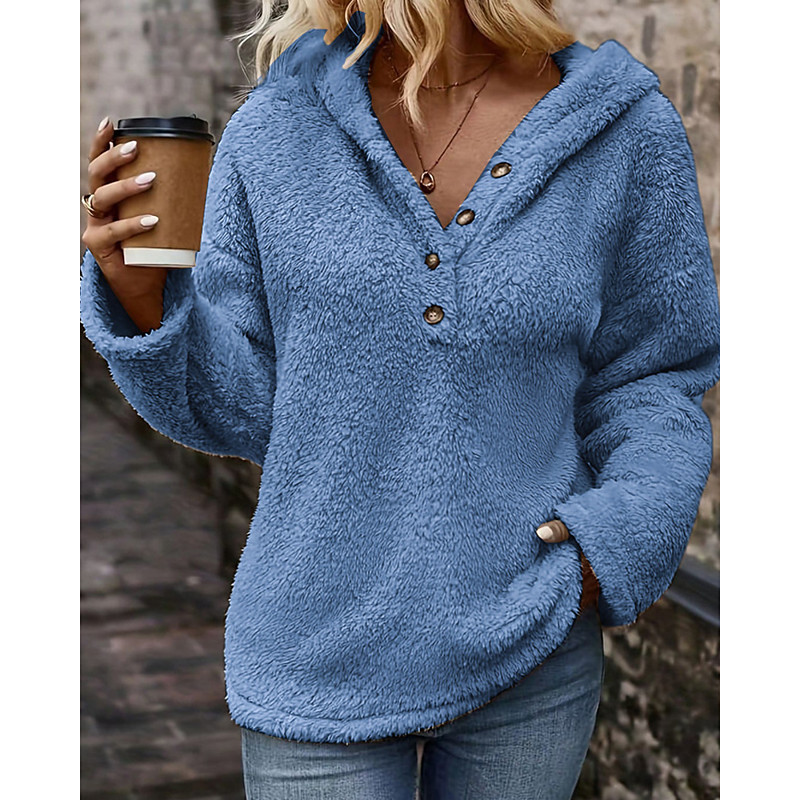 Women's Pullover Hoodie Sweatshirt Plain Casual Long Sleeve Hooded Regular Tops Street Holiday Buttons Blue Pink Apricot Gray Fall Winter