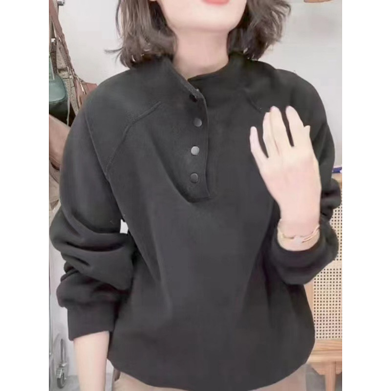 Women's Pullover Sweatshirt Plain Casual Long Sleeve Turtleneck Regular Tops Street Dailywear Buttons Black White Red Purple Green Fall Winter