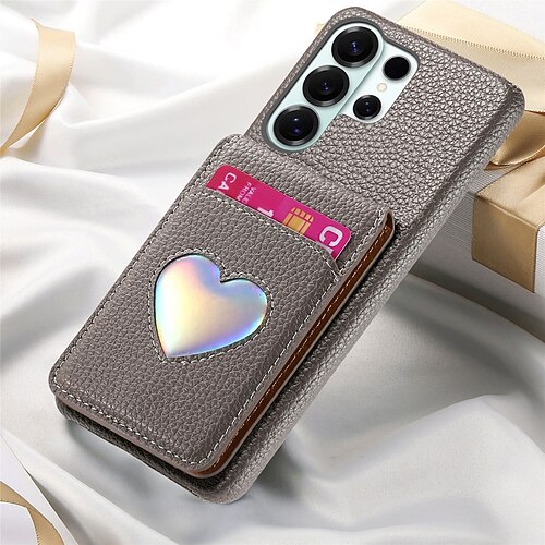 Handy Hülle Handyhüllen Für Samsung Galaxy S26 S26 Plus S26 Ultra Rückseite Brieftaschenhülle Mit Ständer Spiegel Herz Retro TPU PU-Leder