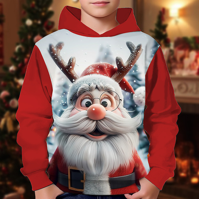 Christmas Boys' 3D Graphic Santa Claus Hoodie Long Sleeve Spring Fall Fashion Streetwear Kids 4-12 Years Hooded Outdoor Casual Daily Regular Fit