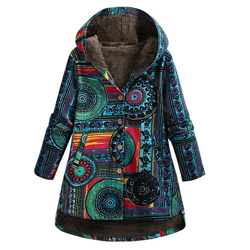 Per donna Giacca in Pile Giacca Sherpa Confortevole Traspirante Tasca Stampato Vintage Casual Floreale Vacanza Streetwear Abbigliamento quotidiano Uscire Monopetto Regolare Con Cappuccio Vestibilit