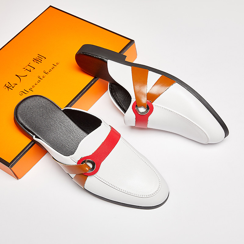 Men's White and Red Slip-On Shoes with Ring Buckle, Trendy Wedding Shoes for Groom and Groomsmen, Comfortable and Stylish Footwear for Wedding Ceremonies and Celebrations