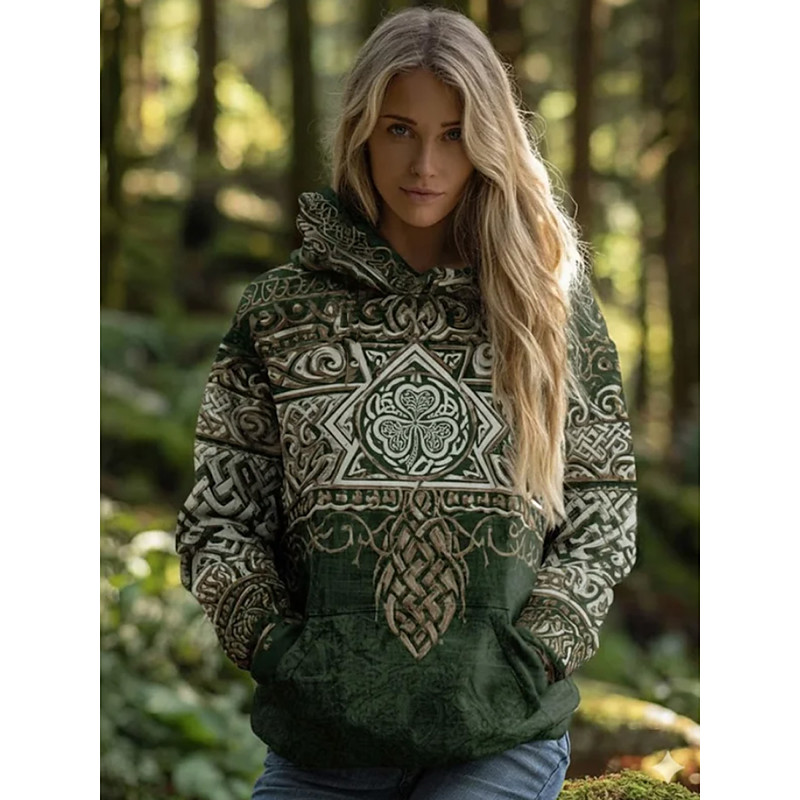 St. Patrick's Day Women's Pullover Hoodie Sweatshirt Graphic Tribal Vintage Casual Long Sleeve Hooded Regular Tops Casual Green Spring Fall