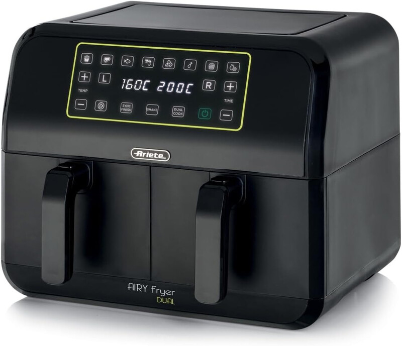 Ariete Heißluftfritteuse Airy Fryer Dual 4623, 1700 W, 8 L, Doppelkorb, LED-Touch-Panel, 8 Programme, Timer, Schwarz