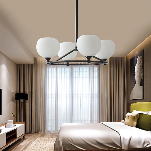 Lampadario A 4/6 Luci Nordico Lampada A Sospensione G9 Sfera Di Vetro Plafoniera Lampadario Di Metà Secolo Lampadario Camera Da Letto Studio Ristorante Illuminazione, Nero